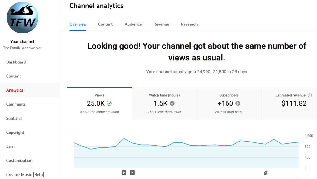 When you have a small channel like mine and you’re not in the business of making shock videos, reacting to other people’s content or modeling bikinis, you do the work because you love the work. In my case, I do love the work. I love coming up with new or different ideas on a project. I really enjoy the challenge of engineering the thing I’m building, and I also like to envision the best camera angle to record the process and make it entertaining. It’s not about the money, which is why I don’t push memberships, or sell merch, or beg for Patreons. That seems so disingenuous. “This is a woodworking channel so I can share my ideas, but please donate, buy me a coffee, visit my sponsor for a product I don’t use, become a member and buy my new hoodie!” No thank you.