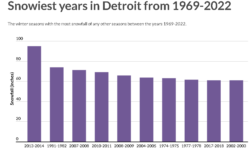 But, those observations were from a 1960-1970 little kid’s point of view. They could be flawed, you know? It’s only my perspective and it could actually be wrong, so I looked into it. I am in fact, wrong about my assumptions. My understanding of snowfall facts are flawed. The heaviest snowfall year in Detroit since 1969 was in 2013. I guess I’ll have to trust the information gathered by the National Weather Service, those known liars and propagandists.