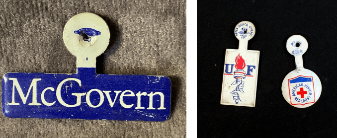 (Examples of those old metal folding lapel pins, circa 1960)