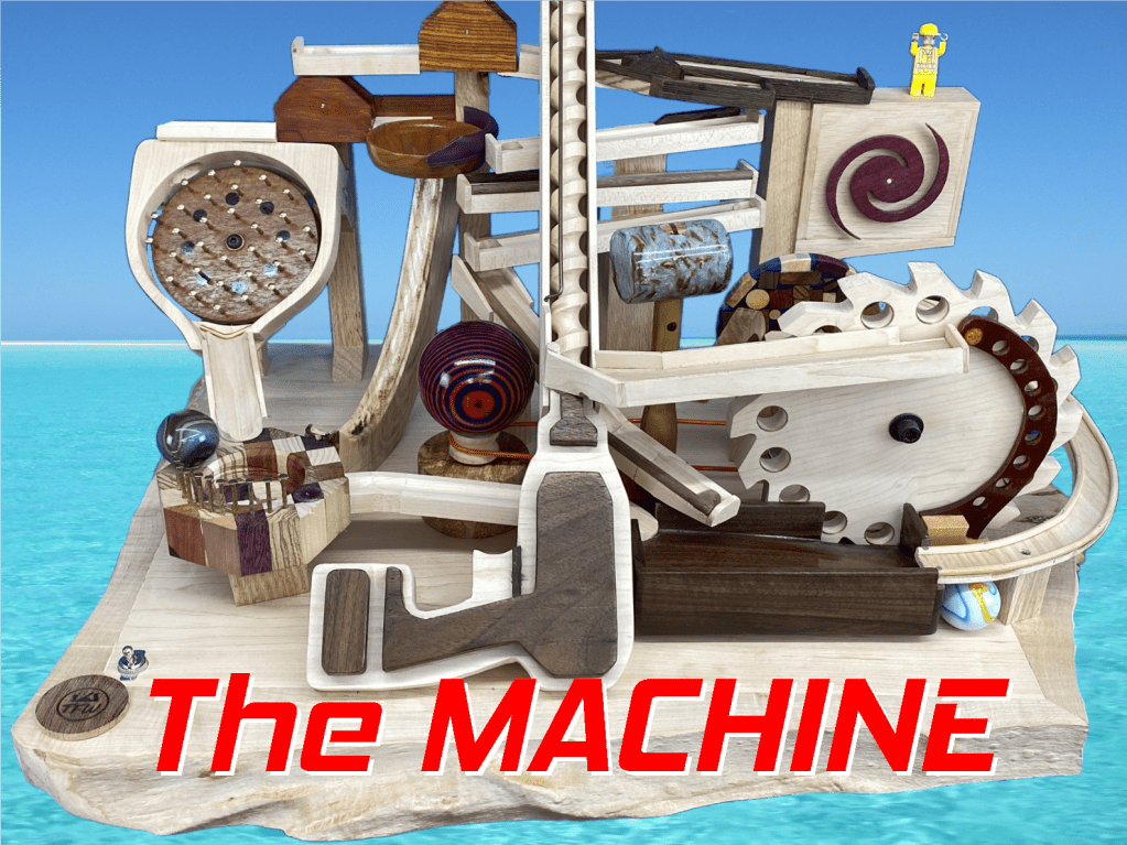 The amazing, the headache inducing, the most difficult mechanical project I’ve ever undertaken. And yet somehow, marbles follow 4 paths to the bottom to successfully complete the cycle and then rise again!